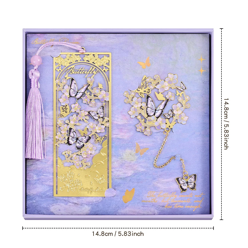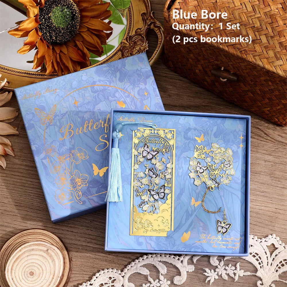 2 Pcs Hollow Flower & Butterfly Metal Bookmarks Set